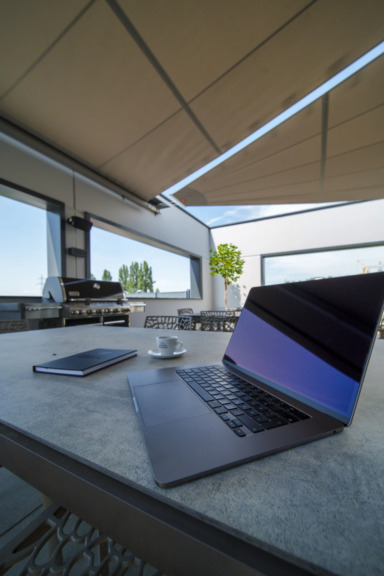 LET’s roll-up triangular sun sail is a symbol of our creativity and demonstrates how groundbreaking products can emerge from humble beginnings. With a surface area of up to 35 m², it provides ample shade and withstands wind speeds of up to 60 km/h. Its low-maintenance design and ability to adapt to different sun positions guarantee a long service life and practical utility.