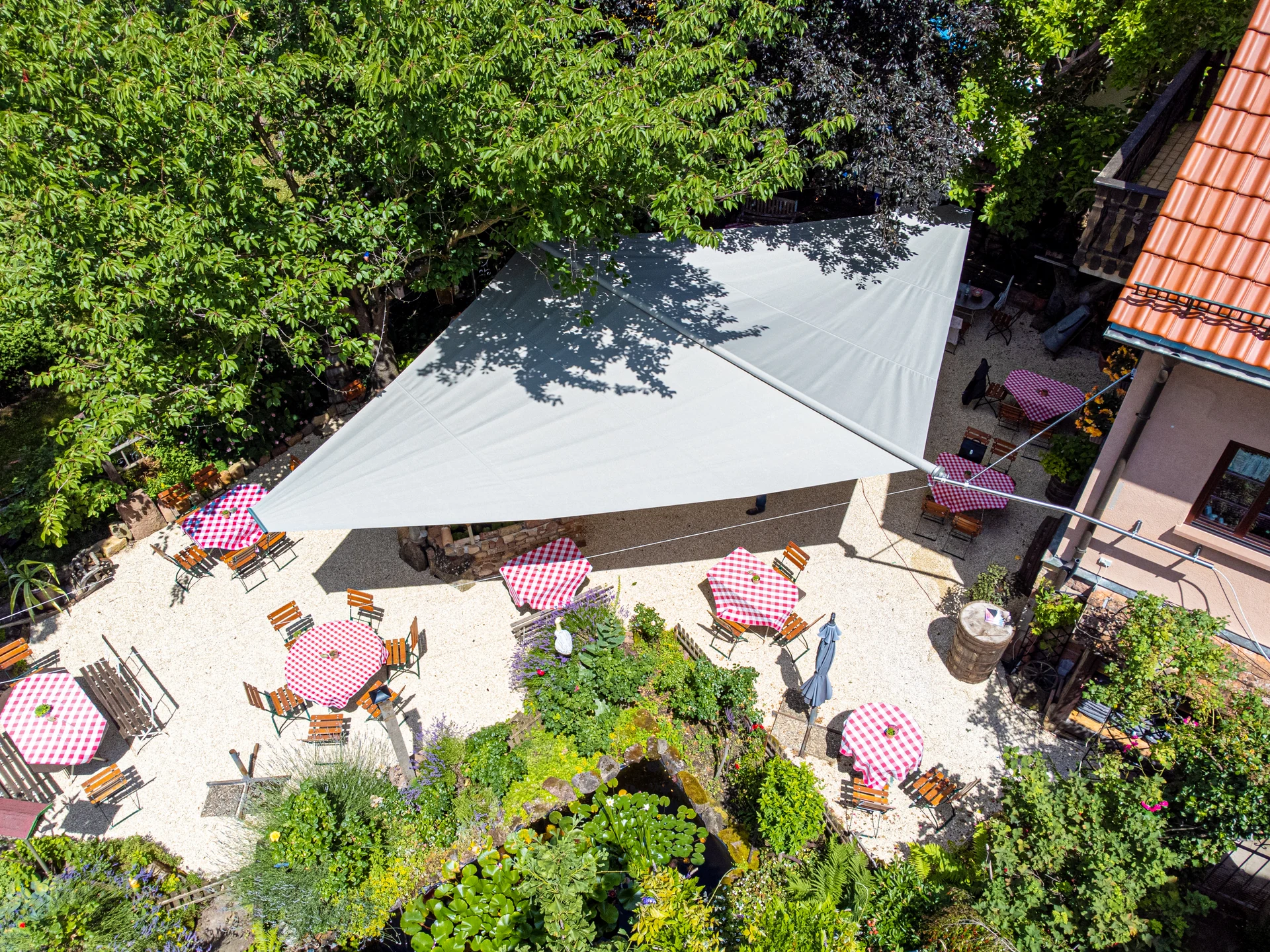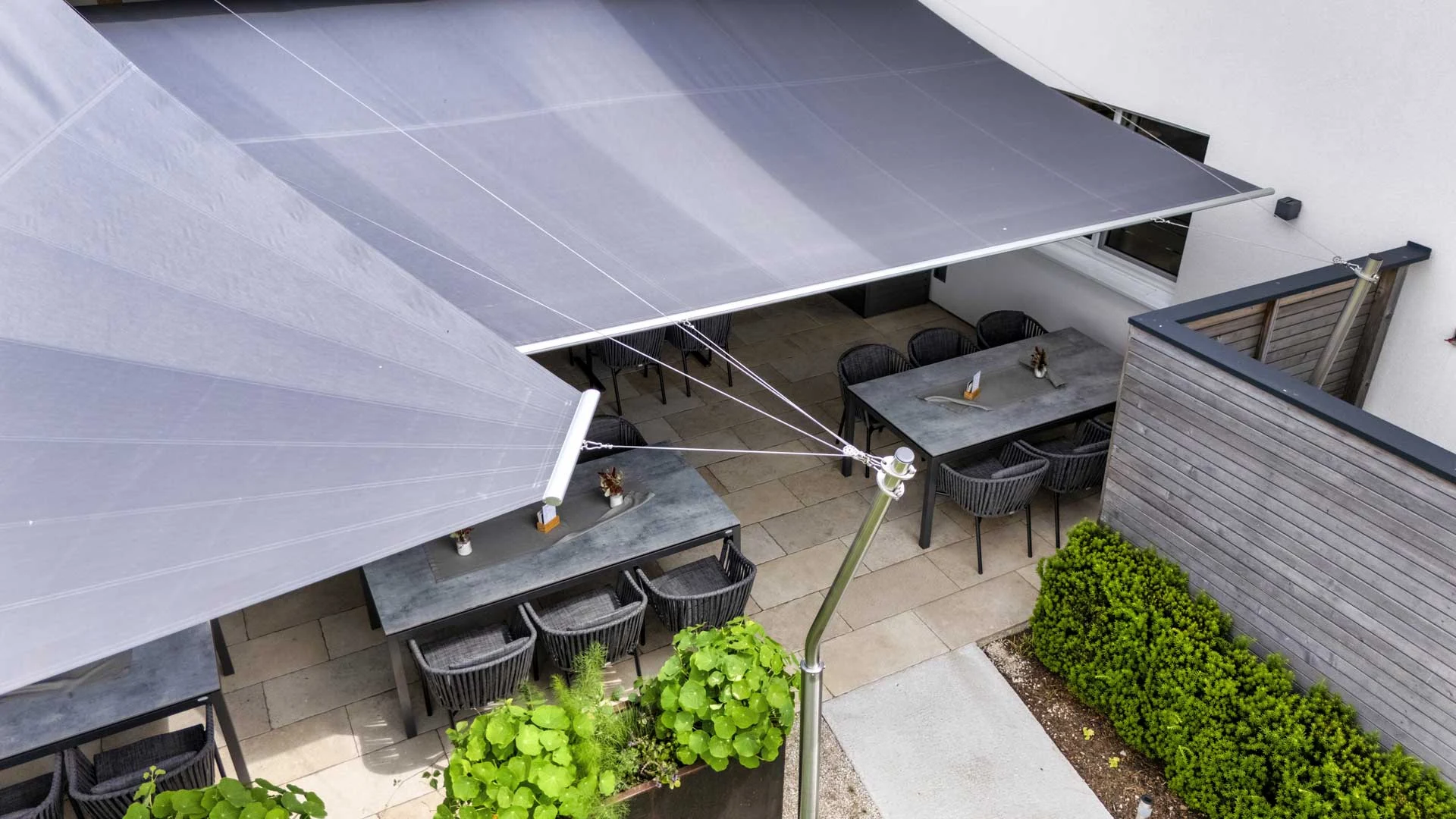 Nie mehr Schirme auf- und abspannen. Relaxed bei jedem Wetter. Seit 25 Jahren sind wir spezialisiert auf die großflächige Beschattung von gastronomisch genutzten Flächen. Mit unserem Sonnensegel bieten wir Ihren Gästen einen Ort zum Entspannen bei jedem Wetter. Durch das durchdachte Design heben Sie sich von der Konkurrenz ab und vermitteln den Gästen, willkommen und umsorgt zu sein.