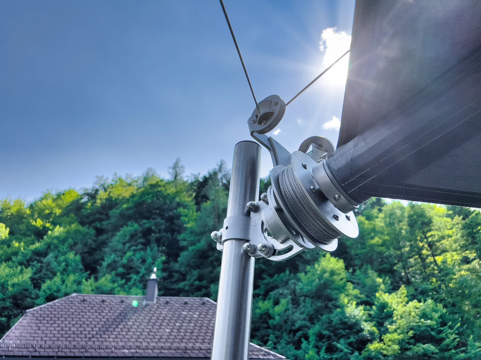 Im Katzerhaus in Ebensee wurde eine elegante Lösung für die typischen Wetterbedingungen des Salzkammerguts geschaffen: Ein maßgefertigter Sonnenschutz im Garten, der Tradition, Komfort und Funktionalität perfekt verbindet.