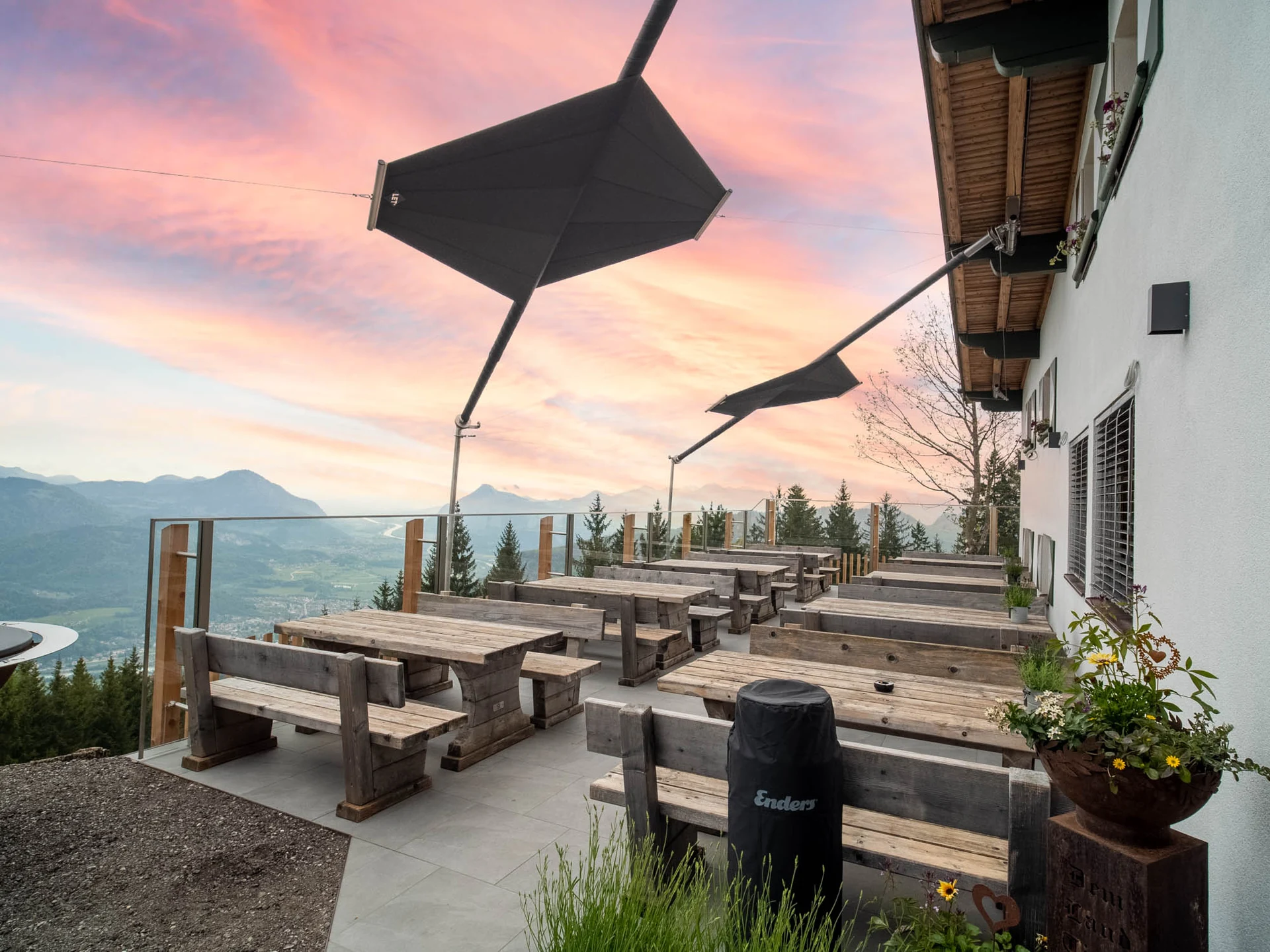 Das Weinbergerhaus inmitten der Tiroler Bergwelt bietet Gästen eine unvergleichliche Aussicht auf Kufstein und das imposante Massiv des Wilden Kaisers. Umgeben von der unberührten Natur des Naturschutzgebiets Wilder Kaiser steht das Haus auf 1.272 Metern Höhe und ist den Elementen schutzlos ausgesetzt. Die Herausforderung: eine Terrassenlösung zu finden, die Wind, Regen und Sonne trotzt und dabei den einzigartigen Ausblick bewahrt. Die Antwort: Sonnensegel Gastgarten von LET.
