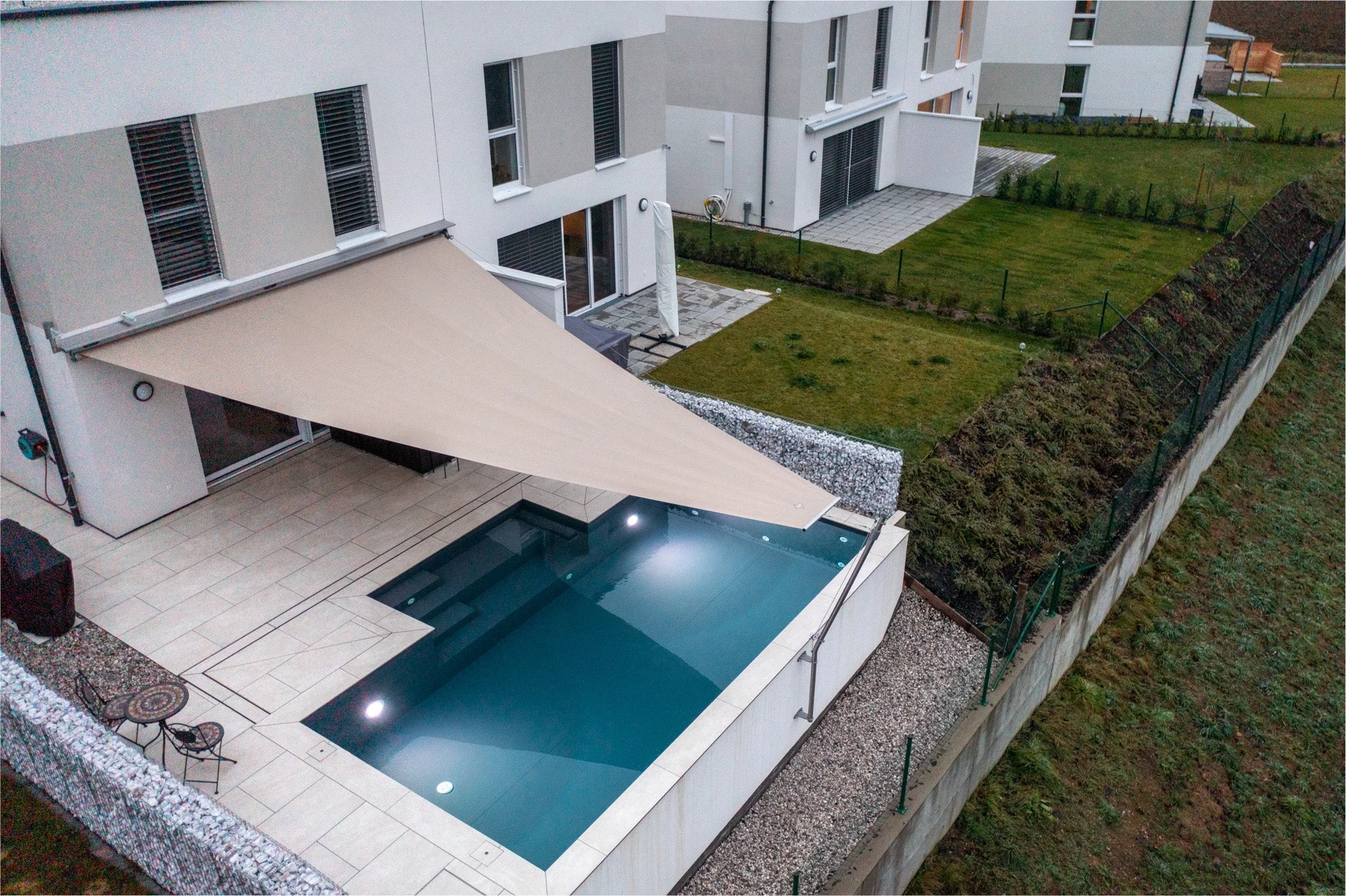 Moderne Architektur verlangt nach flexiblen, ästhetisch integrierbaren Lösungen – genau hier setzen die Terrassenüberdachungen von LET mit freitragenden Sonnensegeln an. Die leichte, schwebende Konstruktion erlaubt maximale Gestaltungsfreiheit und bleibt dabei funktional: Wind- und wetterbeständig, intelligent steuerbar und wartungsarm. Die klare Tuchspannung, kombiniert mit hochwertigen Materialien, schafft eine architektonisch zurückhaltende, aber hochwirksame Beschattung. Ein ideales Element für offene Grundrisse, großzügige Fensterfronten oder fließende Übergänge zwischen Innen- und Außenraum.