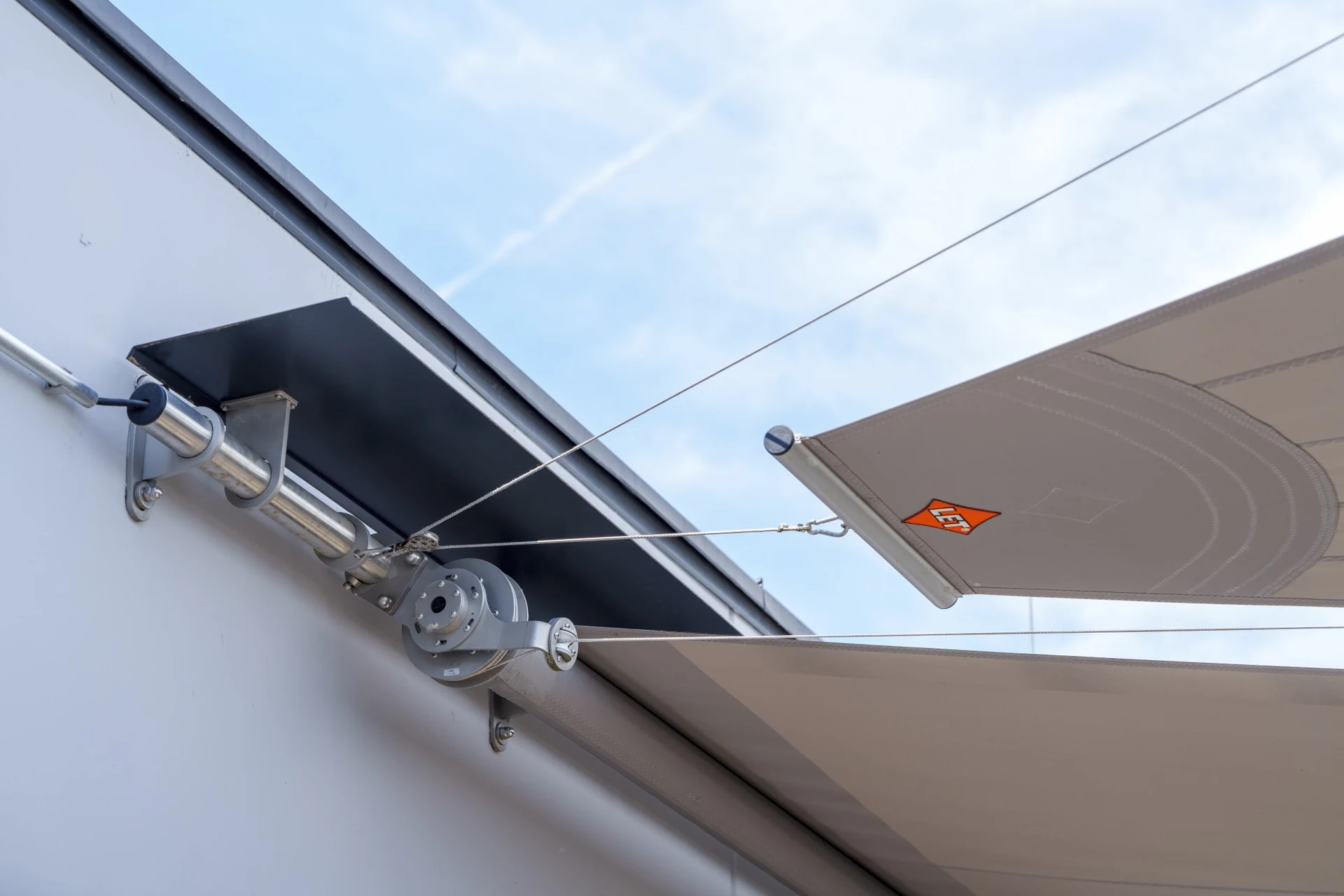 Dank smarter Steuerung über die ACP-Hausautomatisierung per Taster und App sowie integriertem Windwächter ist der Wetterschutz jederzeit intuitiv und sicher bedienbar.