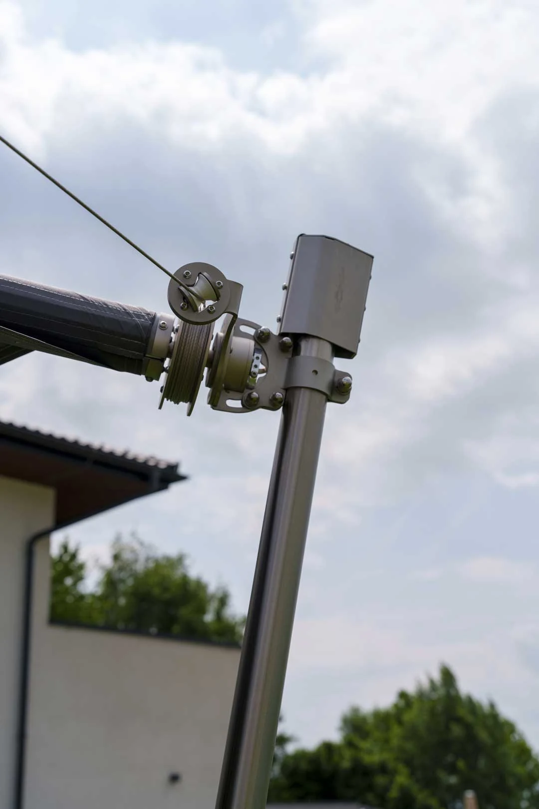 UV-beständige High-Tech-Tücher und robuste Edelstahlelemente sichern Langlebigkeit bei Sonne, Wind und Regen.