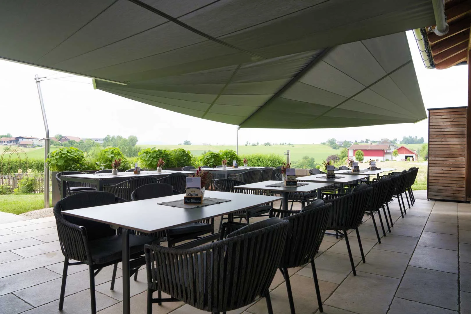 Nicht nur im Sommer zeigt die neue Überdachung ihre Stärke: Auch in der Übergangszeit oder an kühleren Tagen bietet sie Schutz und Komfort. In Verbindung mit dezenten Wärmelösungen lässt sich der Außenbereich nahezu ganzjährig nutzen – ein klarer Mehrwert für Gäste und Betreiber gleichermaßen. So entsteht ein Ort, an dem kulinarischer Genuss im Einklang mit der Natur das ganze Jahr über möglich wird.